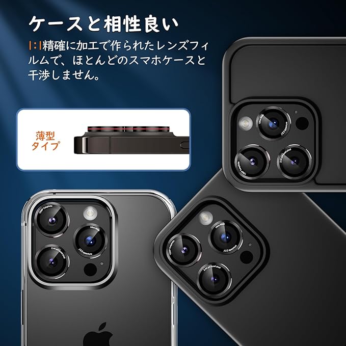 【スマホケースと干渉なし】iPhone 13 Pro Max/iPhone 13 プロのレンズにカスタム設計されたレンズフィルムは、引っかかる感がなく、ほとんどのケースに干渉せず装着可能。★★★品質保証付き:当店でご購入の製品は6ヶ月間の保証サービスをご提供しております。「初期不良」、「違う商品が届いた」、「ヒビ入り/割れた」など場合、弊社にご連絡いただければ迅速に対応いたします。