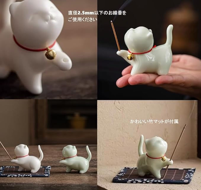 speed mao おしゃれ 和風 猫ちゃん 香炉立て お線香 ブラシ付き 癒し リラクゼーション などに ホワイト