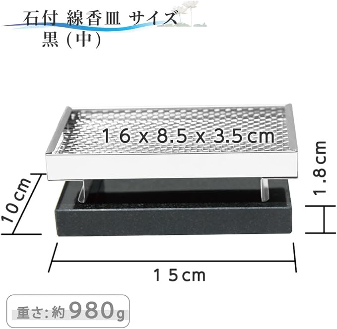 【お墓用】【御影石付き】線香皿 御影石の台座付きで風で飛びません。見た目の豪華に。シックな黒。お墓用 高級みかげ石製 台座 ステンレス線香皿付 お墓の見栄えが格段アップ おくだけ印象がグレードアップ SRSB-15-M