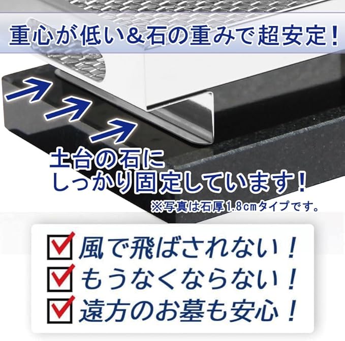 台座の御影石の重みで風で線香皿が飛んできません。