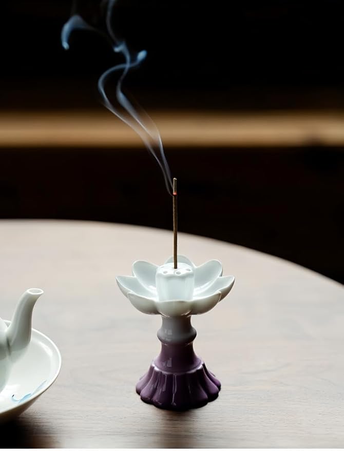 デザイン: 美しい蓮の花をモチーフにした白とパープルのグラデーションカラーの線香立て、仏壇や瞑想スペースに最適