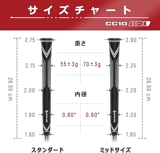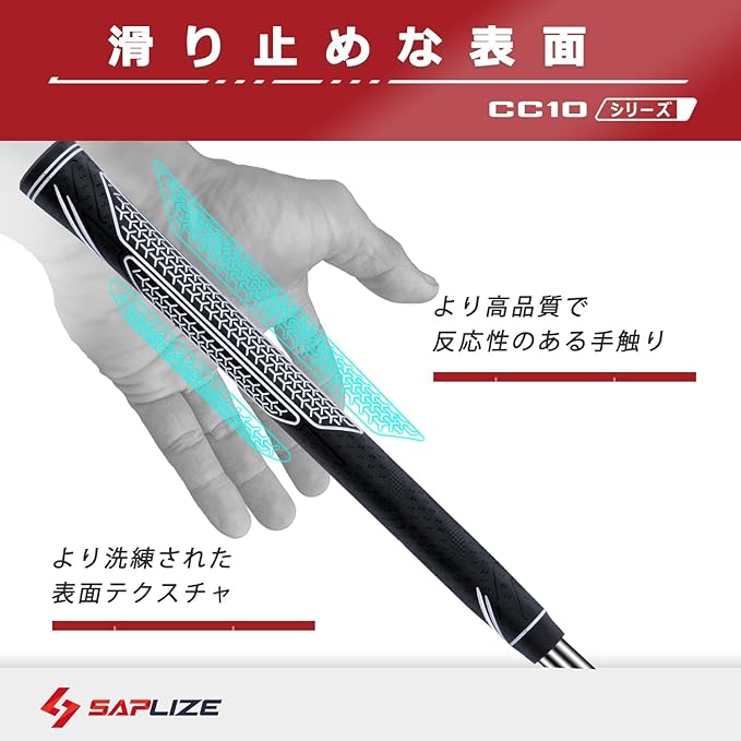 SAPLIZE 高性能ゴルフ用ラバーグリップ、高衝撃吸収、非滑り、15本のテープを含む13本のグリップ、標準/中サイズ、6色