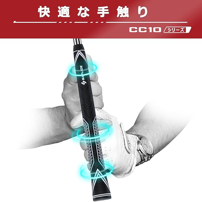 【高い衝撃吸収性】CC10シリーズは、新しく開発された高性能ゴムを使用しており、従来のグリップに比べて衝撃吸収性が10%向上しています。これにより、あなたのスイングがいつも通り安定した状態で行えます。