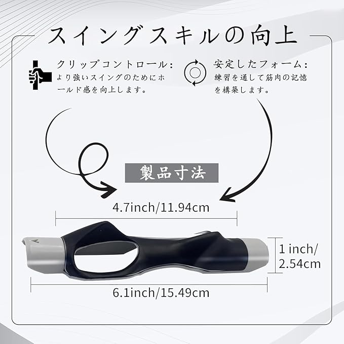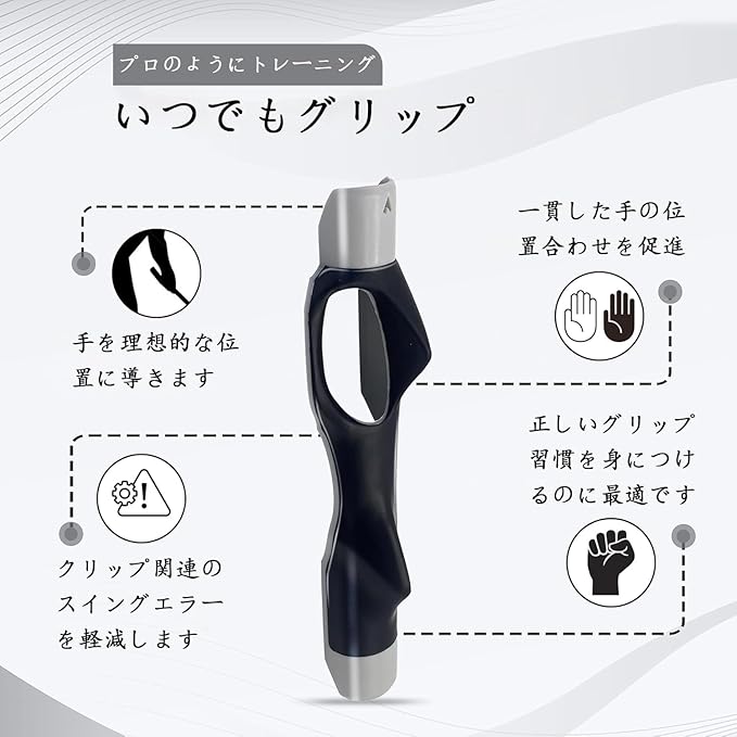正しいグリップ姿勢を習得:ゴルフスイングの基礎となる正しい手の位置と握り方を自然にガイド。安定したスイング作りをサポートします。
