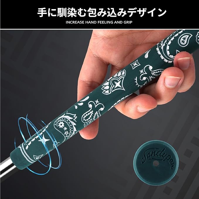 【ゴルフグリップ下部のラバー】 高品質のラバーで滑り止め性に優れ、変形しにくいです。厚いゴム素材は手への衝撃をしっかり吸収します。