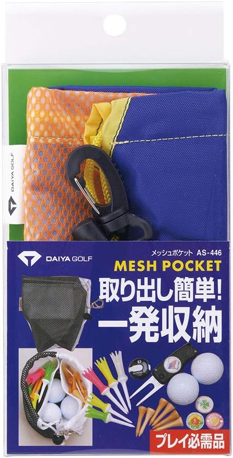 ダイヤゴルフ(DAIYA GOLF) メッシュポケット ラウンド用品 小物収納ポーチ ボールケース 仕分けポケット フック付き 黒・オレンジ AS-446