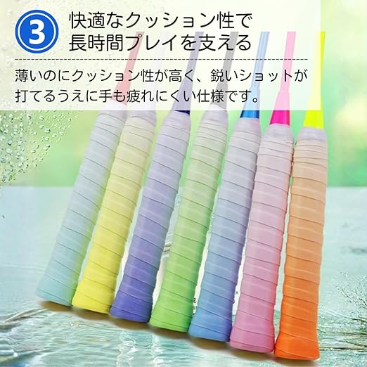 【スポーツに対応する汎用性】 テニス類だけでなく、ゴルフのクラブや卓球のラケットなど、多種多様なスポーツギアに活用できます。適度なクッション性が手の負担を和らげ、長時間のプレーでも疲れにくいのが特長。自分のスタイルに合わせて厚みを調整でき、プロのような繊細な感覚を、あらゆる競技において手軽に実現します。