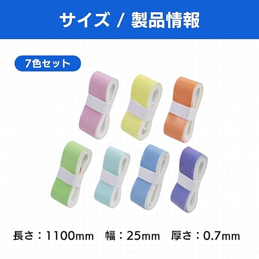 ateena グリップテープ バドミントン テニス ラケット 交換用 ゴルフ 卓球 バット ソフトテニス 釣り竿滑り止め (7色セット, 2.5cm)