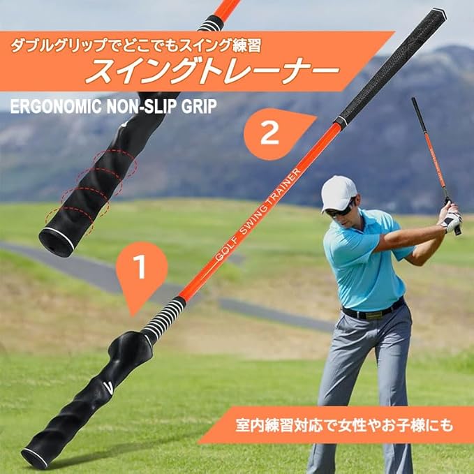 スイングトレーナー ゴルフ スイング練習 素振り 室内練習 グリップ矯正 トレーニング ストレッチ レディース メンズ ジュニアにも 軽量シャフト インドア練習 ダブルグリップデザイン しなるシャフト