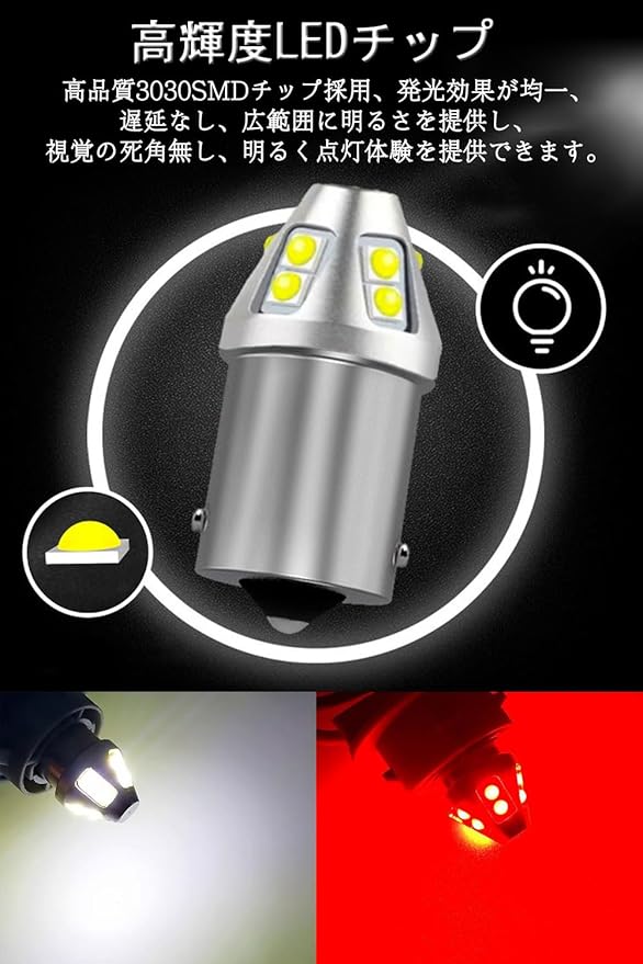 高輝度 拡散照射仕様:このt20 led バックランプ は高輝度美光照射の3030SMD LED素子10連搭載。光線が集中でき、ついに照射距離も増やせる、360 全面的に照射でき。昼間の環境で十分確認出来る明るさと拡散性、純正ハロゲン球より明るいのに省エネ、明るさは約3倍に大幅アップしました。