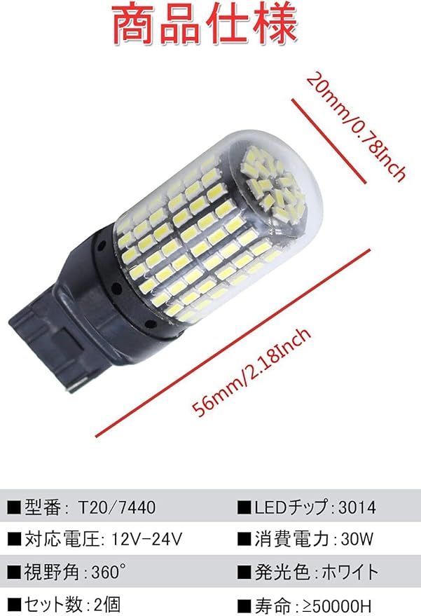 放熱性に優れ:このt20 LED 7440バックライトは本体は耐熱性と放熱性に優れた航空用アルミ素材と専用なガラスファイバー基板を使用する事により、チップの使用寿命を長引かせる事が可能となりました。