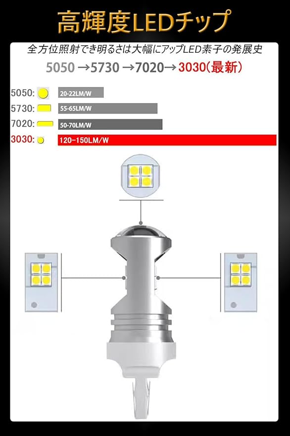 耐熱抜群長寿命:このウインカー led は本体は耐熱性と放熱性に優れたアルミ素材と専用なガラスファイバー基板を使用する事により、チップの使用寿命を長引かせる事が可能となりました。
