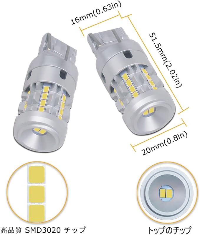 ▼【2 T20 7443 W21/5W バルブ/カバー】: 26個SMD3020高輝度チップ内蔵、25Wハイパワーcanbusはほとんどの自動車にエラーがない; 動作電圧:12V-24V; miniサイズ: 51.5mm*20mm*16mm; LEDバルブの寿命が50,000時間以上使えます。寿命がハロゲンより100倍長くなります