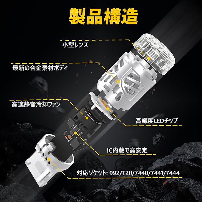 T20 LEDウインカー 兼ピンチ部違い アンバー 冷却ファン搭載 キャンセラー内蔵 ハイフラ防止機能内蔵 車検対応設計 1000LM DC12V 2個セット
