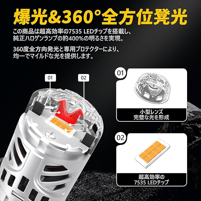 『超高輝度&広角照射』 Luxnexu最新7535チップ搭載、28Wで1000LMの高輝度を実現。360 全方向に均一な光を照射し、後方からの視認性を大幅に向上。キレのある明るさで周囲にしっかりアピールでき、夜間走行や悪天候時でも安全性を確保します。光線は柔らかく、まぶしさを抑えた快適設計。