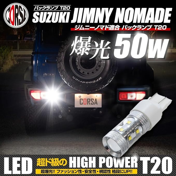 CORSA ジムニー ノマド 適合 T20 50W バックランプ LED 純白色 車検対応 視認性 爆光 jimny NOMADE リア テール カスタム パーツ アクセサリー ドレスアップ [2] M