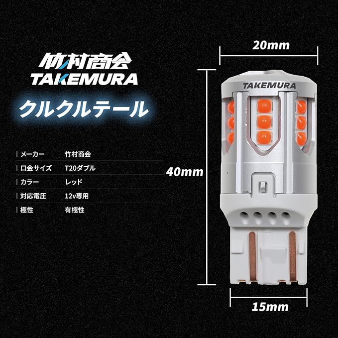 Takenous 竹村商会 T20 LED ダブル クルクルテール レッド 12v 7440(T20ダブル)
