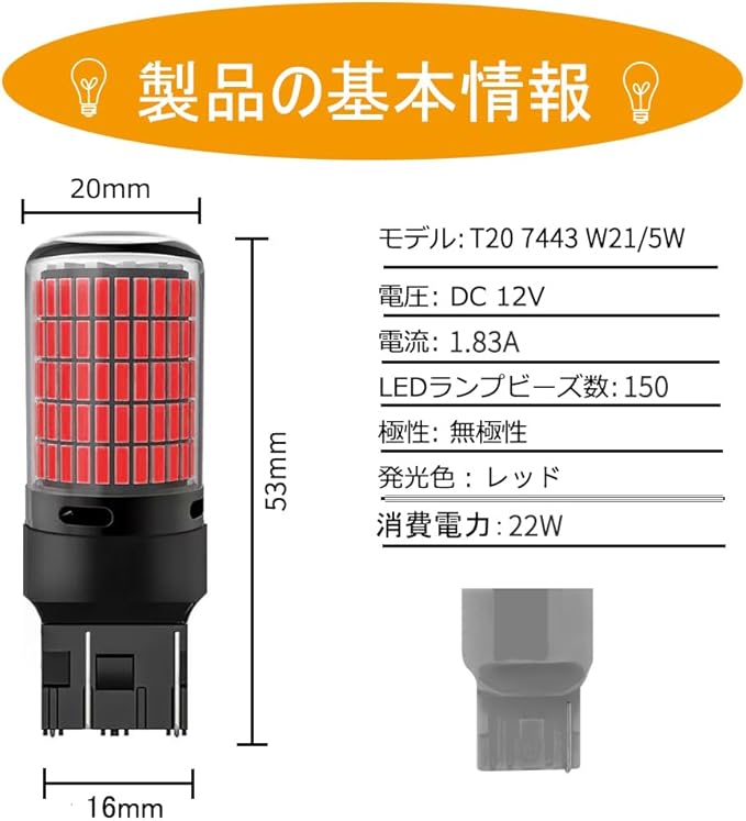 【最新型のデザイン】 純正T20サイズ箇所で利用した150LEDが持っています、爆光が大幅に向上しました。ウインカー、コーナーランプ、ターンシグナルランプなどの所を使うことができます。極性はありません、極性の確認が不要です。取り付けも簡単、数分の時間は完成できます。