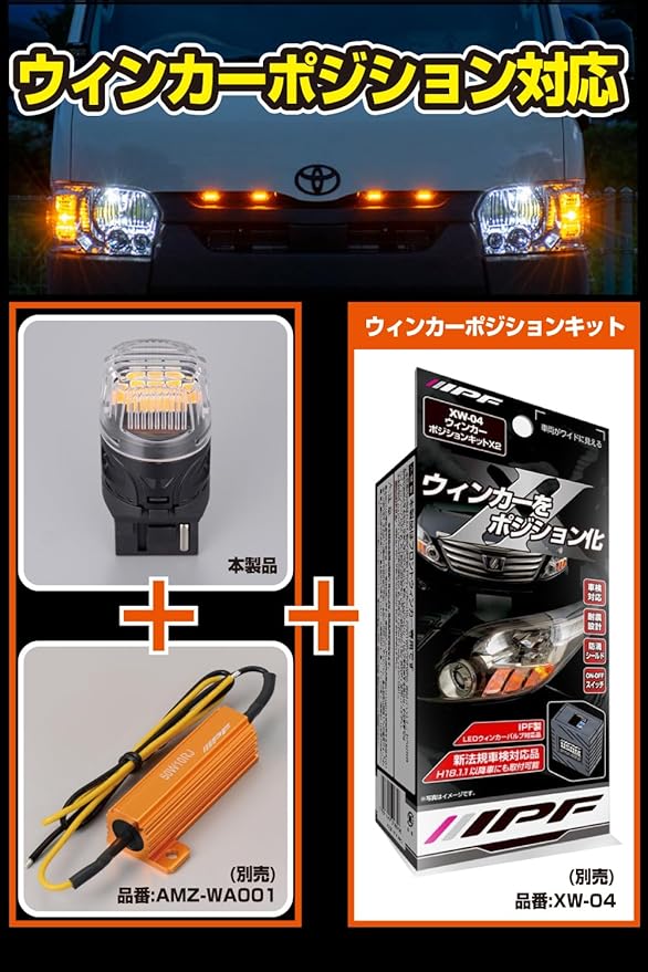 M's Basic by IPF ウィンカー LED バルブ T20 アンバー 450lm ウィンカーポジション対応 ピンチ部違い対応 キレの良い点滅 別途抵抗必要 2個入 AMZ-WB010