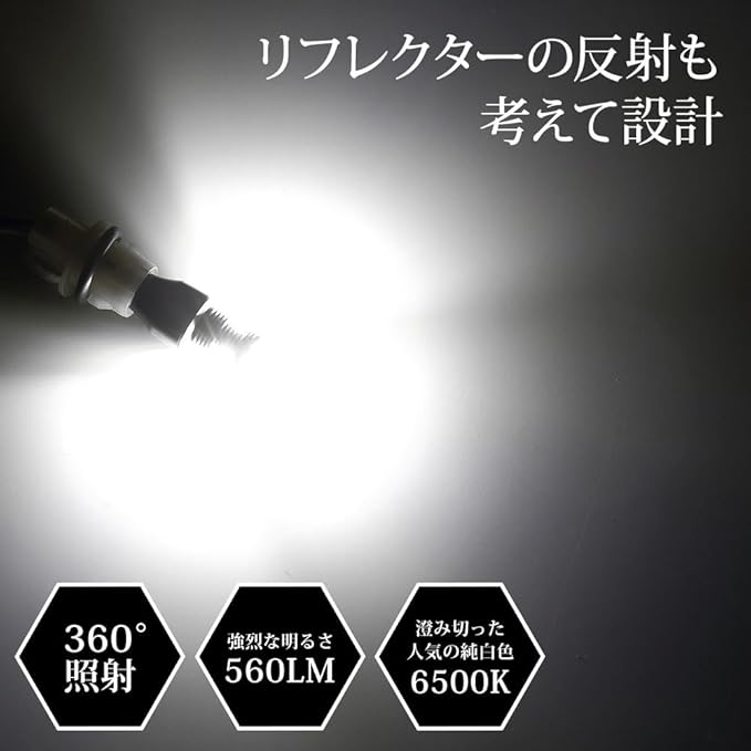 ✅ 超爆光45W・560LMで後方視認性アップ:超高輝度SMD LEDを9基(側面6+先端3)搭載。純正球を大きく上回る明るさで、夜間や暗所でのバック時も安心感を高めます。