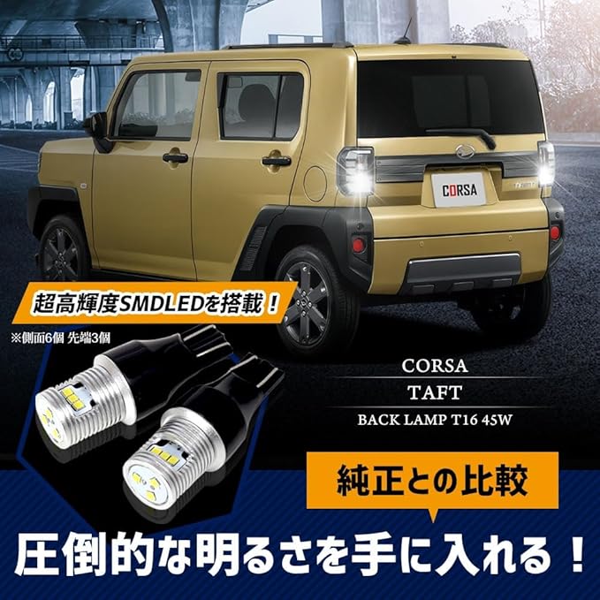 CORSA タフト LEDバックランプ T16 45W 560lm ウェッジシングル球 ホワイト 後退灯 高輝度 省電力 1120LM カスタム パーツ アクセサリー ドレスアップ 車検対応 TAFT [2] M