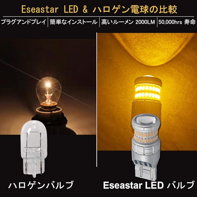 7443 WY21W T20 LEDダブル ウィンカー バルブ ハイパー防止点滅なし 12V-24V キャンセラー内蔵 ステルス車検対応、アンバー 爆光、 2個入り