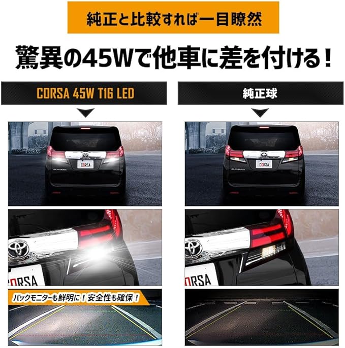 CORSA アルファード ヴェルファイア 30系 適合 LED バックランプ T16 45W 2個1セット バックライト 無極性 6500K ALPHARD VELLFIRE カスタム パーツ アクセサリー ドレスアップ [2] M