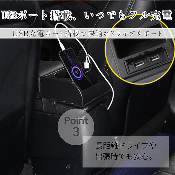 【USB充電ポート搭載で快適なドライブサポート】内蔵USBポートにより、スマートフォンやタブレットの急速充電が可能。長距離ドライブや出張時も、デバイスの電源確保がスムーズに行えます。