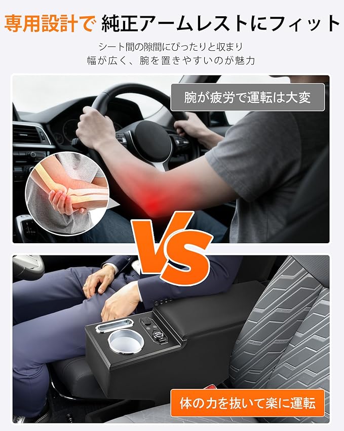 【抜群の収納力&快適な肘置き】純正アームレストより収納スペースを拡大した2026新型ルーミーコンソールボックスはスマホ・ドリンク・小物類などをすっきり整理できます。PUレザー調の高級質感と、適度なクッション性を持つアームレスとしては、見た目も触り心地も上質で、長距離ドライブの快適性を大幅に引き上げます。