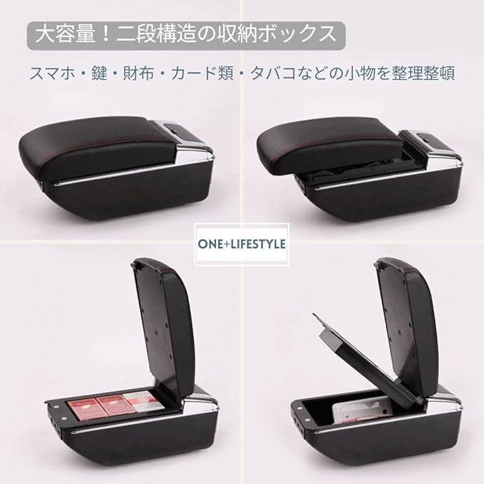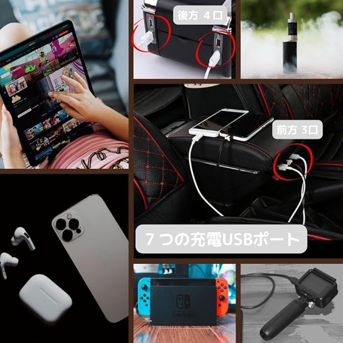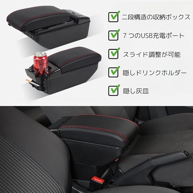 ◆【多機能収納&USB充電ポート搭載】 二段構造の収納ボックスは、スマホ・鍵・財布・カード類・タバコなどの小物を整理整頓できる大容量設計。前方に3口、後方に4口の合計7ポートUSB充電機能付きで、スマホやタブレットの同時充電も可能。