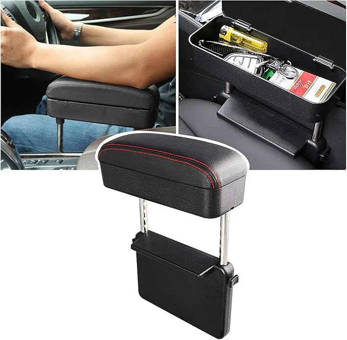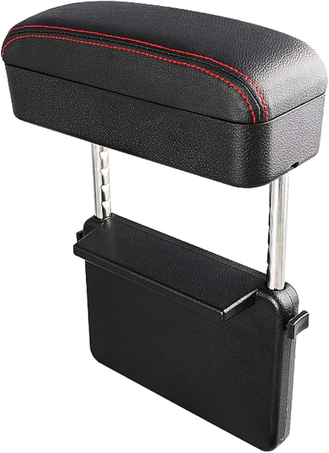 ruiya 新型 日産オーラ ノートオーラ fe13 適用 アームレストサポート 肘掛け アームレスト 車用アームレスト コンソールボックス 小物入れ 7色選択 合皮素材 アクセサリー パーツ カスタムパーツ (黒(赤ステッチ))