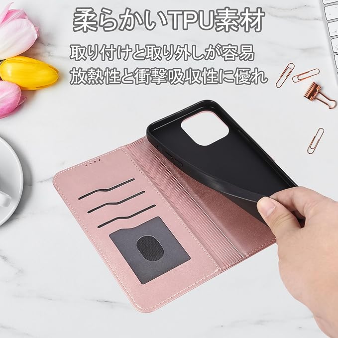 【高品質素材】このケースは高品質のPUと柔らかいTPU素材を採用し、厳選されたレザーを使用し、高級感があり、肌触りがよく。軽量で薄型のPU素材が360度全方位の保護を提供します、快適な手触り、指紋防止、放熱性と衝撃吸収性に優れ、耐久性と保護性に優れています。繊細なステッチ、高品質のマグネットクロージャー、開閉が簡単、デザインは豪華でシック、ファッションセンスを高めます。
