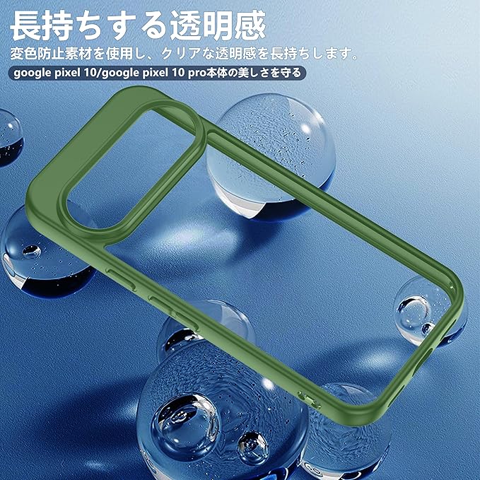 【透明度が高い】高級熱可塑性ポリウレタン(TPU)素材を採用し、常に透明感を保ち、長時間使用しても黄色に変わりません。透明で、グーグル ピクセル 10/グーグル ピクセル 10プロケースをつけてもpixel 10/pixe 10pro本体の視覚効果を損なわず、本体の色をそのまま。