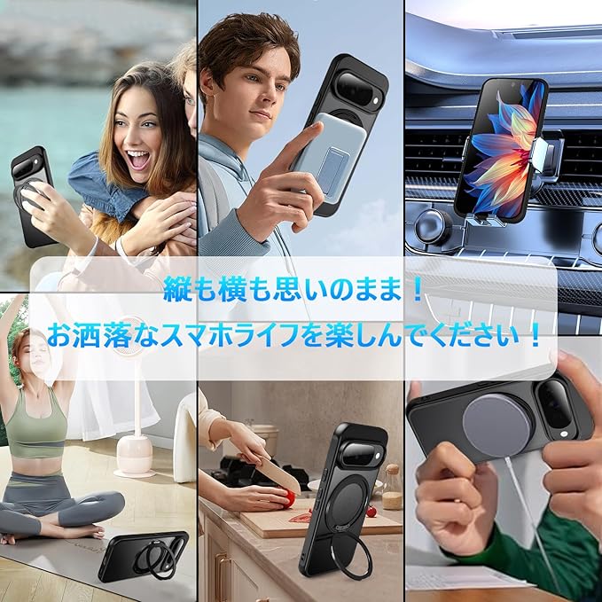 【MagSafe対応・強力な磁力吸着】背面に薄くて強いマグネット内蔵しています、吸着力を高めて、安定感をアップしてエネ損失なしの快速ワイヤレス充電できる。ケースをつけたままマグセーフ機能を快適に使用できます。車載ホルダーでの使用時もとても安心感溢れ、様々なMagSafe用のアクセサリーと相性バッチリ!より安全、安定、急速なワイヤレス充電体験をもたらします。ご注意:この製品はすべての Magsafe デバイスと互換性がありますが、Qi フイャレス充電には適していないため、購入する前にこの点を考慮してください。