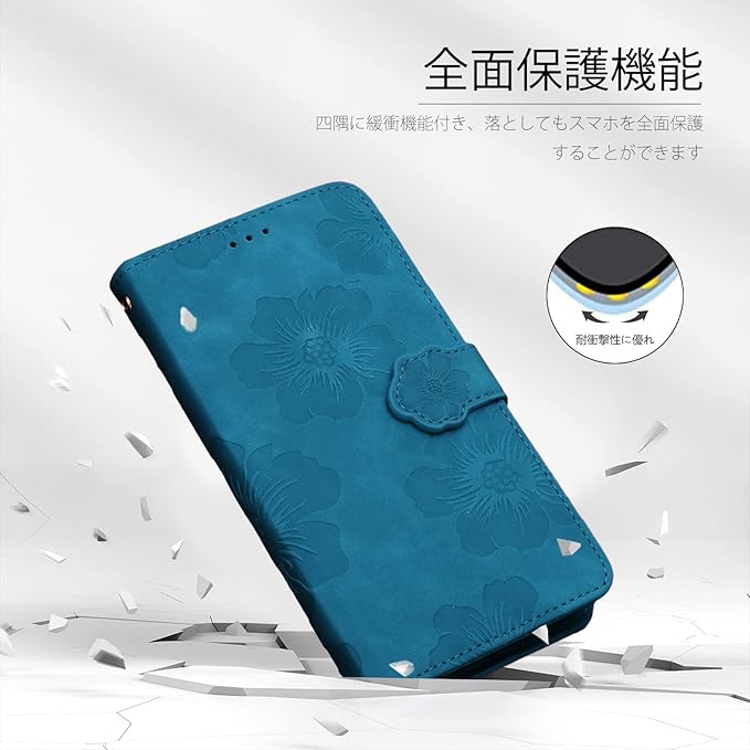 CASAFUNY 向けの Google Pixel 10 Pro XL ケース 手帳型 人気 カバー 適用 グーグルピクセル10プロ XL ケース 手帳型 かわい い美しい桜の柄 スマホケース 高級PUレザー お洒落 財布型 保護カバーカード収納 マグネット式 スタンド機能 軽量 薄型 (レイクブルー)