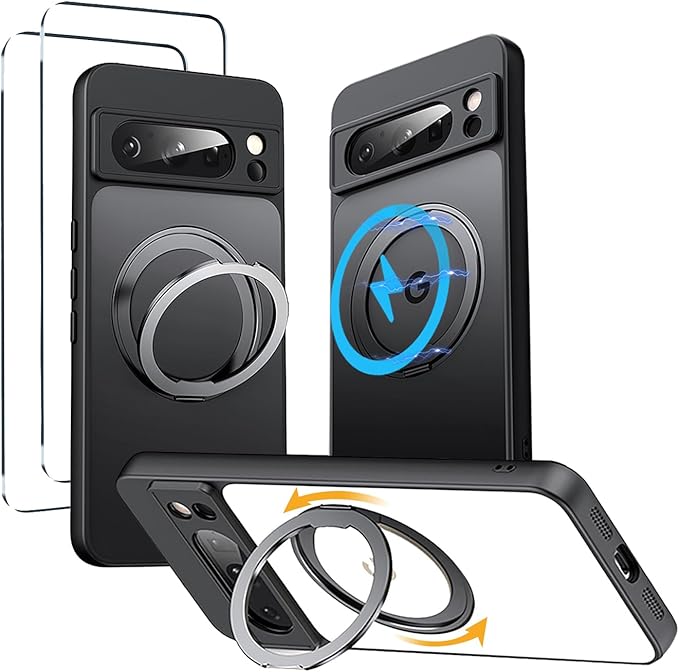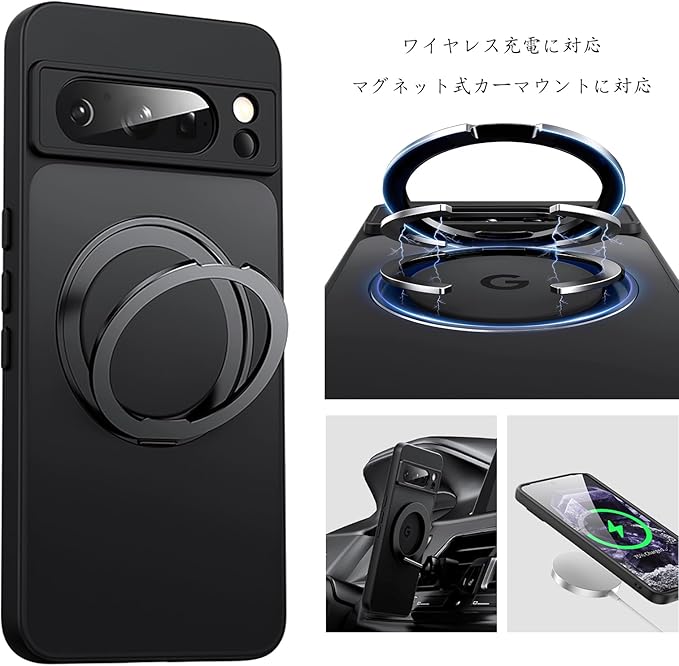 【強化フィルム2枚付き】HCXLYP Google Pixel 10 Pro XL ケース MagSafe対応 グーグル ピクセル 10 プロxl カバー リング スタンド 多機能 360度回転 ぐーくるぴくせる10proxlケース ワイヤレス充電対応 米軍MIL規格 スマホケースひくせる10 proxl 耐衝撃 ブラック