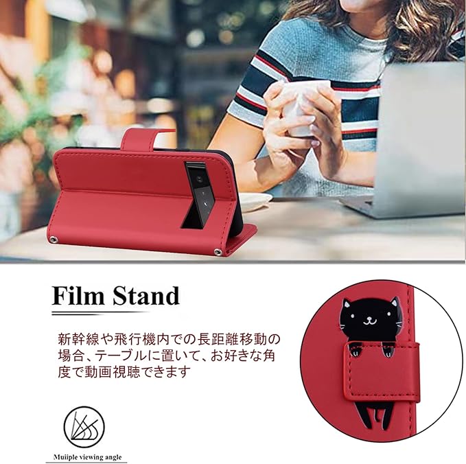 ❷【収納性・財布型】ケースの裏側にカードポケット2つ,クレジットカード、idカード、定期券を収納可能、透明ポケットに写真、名刺入れも可能です。❸【横置きスタンド機能付き】動画の視聴やテレビ電話などを長時間行っても疲れません、新幹線、飛行機の中で暇つぶしに最適♪。