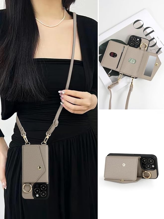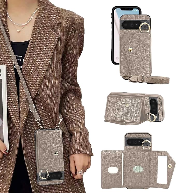 For Google Pixel 10 Proxl ケース 手帳型 ピクセル10プロxl ケース ショルダー 背面カード収納 グーグルピクセル10Proxl 財布型 スタンド機能化粧鏡 スマホケース Pixel10Proxl ストラップ 肩掛け 鏡付き ピクセル10 pro xl カバー 全面保護 耐衝撃 おしゃれ 防水 高級 レザー - カーキ