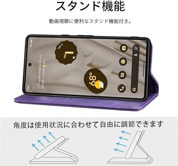 適用Pixel 10/10 Pro ケース 手帳型 高質PUレザーGoogle Pixel 10 Pro ケース グーグル ピクセル10プロ カバー ケース 手帳型 耐衝撃 内蔵マグネット開閉式 ベルトなし スマホケース おしゃれ カードポケット スタンド機能 便利 スプラット同梱 携帯ケース(パープル)