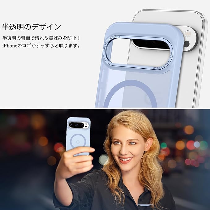 GaoBao Google Pixel 10 / 10 Pro ケース グーグルピクセル10 ケース Magsafe対応 PC+TPU 黄ばみにくい ストラップホール付き ワイヤレス対応 滑り止め カバー 半透明マット 画面レンズ保護 指紋防止 耐衝撃 ライトブルー