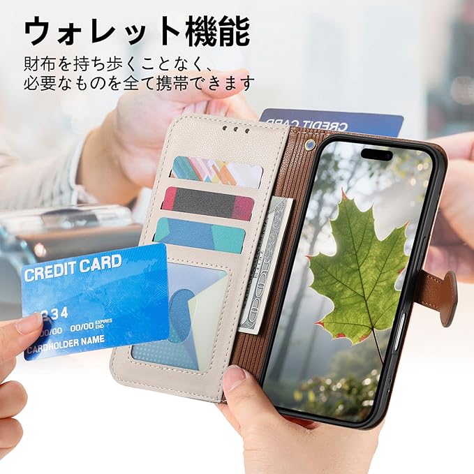 スタンド機能とマグネット機能: Pixel10 ケース 手帳型 ショルダー は水平スタンド機能を備えており、お好みの角度で動画視聴や読書が楽しめます。手持ち不要で、長時間でも快適にご利用いただけます。外側は高品質PUレザーとリーフデザインのマグネットベルトを採用し、内側には衝撃吸収性に優れたTPU素材を使用。ピクセル 10 ケース 手帳型 はデバイスを総合的に保護するだけでなく、耐摩耗性と防水性も備え、使い心地も快適でデザインも優れています