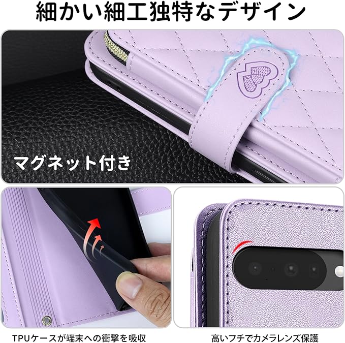 【スタンド機能&サイドマグネット】:❶グーグルピクセル10 カバータンド機能を搭載しており、お好きな角度を調整でき、両手が解放され、お気軽に読書や動画視聴を楽しむことができ、特に新幹線や飛行機内での長距離移動の場合におすすめなグーグルピクセル10pro カバーです。❷サイドマグネット式のデザインなので簡単に操作でき、片手での操作にも便利です。カバンやポケットに置いても、マグネットでしっかりしているので、スマホを保護しながら、グーグルピクセル10プロケースが開いてしまうことも心配はありません。ケースが開いてしまうことも心配はありません。