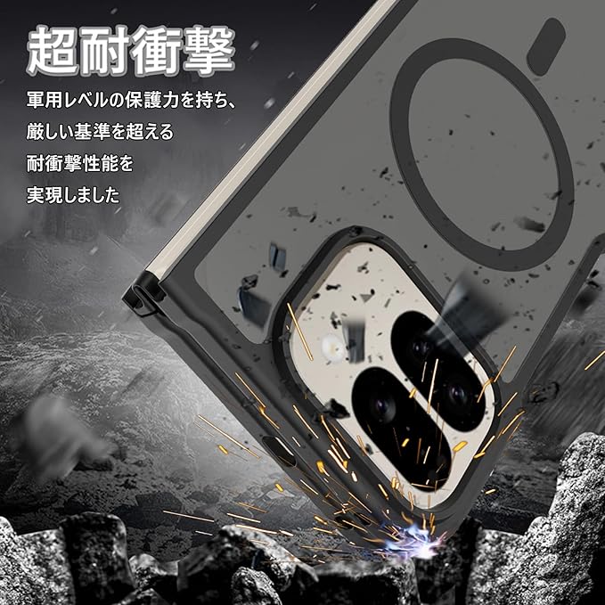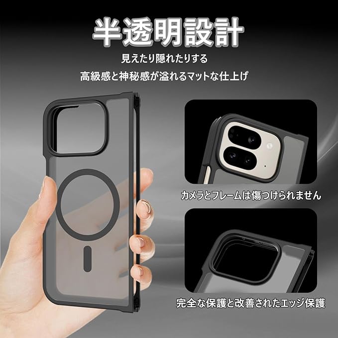 対応 Google Pixel 10 Pro Fold 用の ケース ワイヤレス充電 米軍MIL規格 MagSafe対応 耐衝撃 半透明 マット仕上げ 滑り止め 黄ばみ防止 指紋防止 (マットブラック)