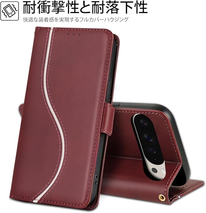 用の google pixel 10 pro xl ケース 手帳型 カード収納 グーグル ピクセル10プロ XL カバー 強い磁気吸引 高級レザー PUレザー 衝撃吸収 キャッシュポーチ リストストラップ 横置きスタンド機能 財布一体型 全面保護ー 落下防止 6.8インチ(レッド)