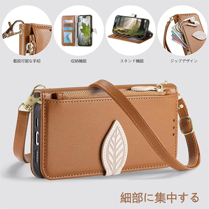 Vokpok対応 Google Pixel 10/10 Pro ケース 手帳型 ショルダー スタンド機能 強力マルチカード収納 グーグルピクセル 9/9 Pro 財布型ケース 肩掛け 斜めがけ 手首かけ、掛けストラップ付き おしゃれ 実用性 ジッパー小銭入れ Pixel 9/9 Pro スマホケース PUレザー ある滑らかな手触り ピクセル10/10 Pro ケース, ブラウン