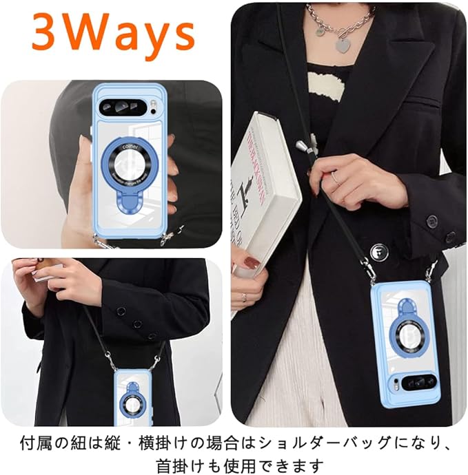 Google Pixel 10 Pro XL ケース クリア PC MagSafe対応 グーグルピクセル10pro xl スマホケース 首掛け 肩掛け 斜めがけ 付き縦/横 2WAY 調節可能なショルダー 薄型 軽量 全面保護