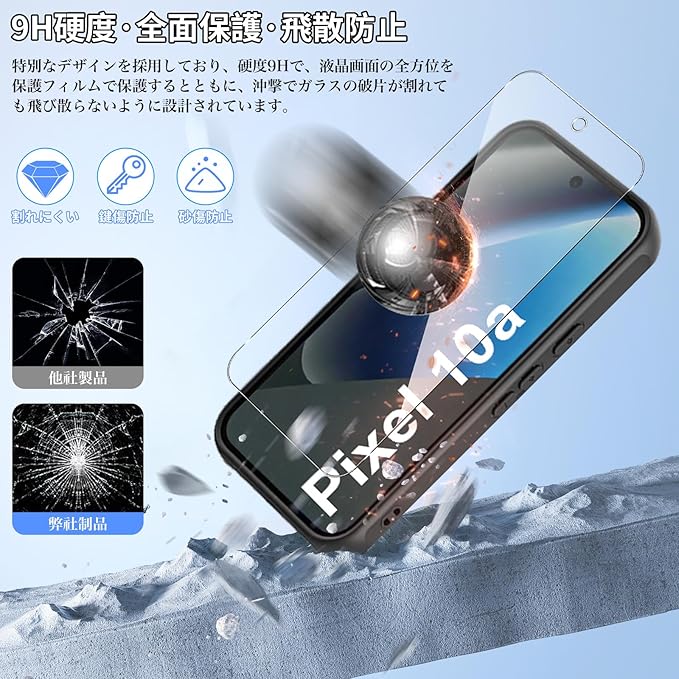 【正確な対応と充実したセット内容】このスマホケースは Google Pixel 10a の 6.3 インチの画面に完全に合わせて設計されており、あらゆる細部まで正確にフィットします。パッケージには、ケース*1、ガラスフィルム*2 が含まれており、あなたが簡単に全方位の保護を始められるようになっています。