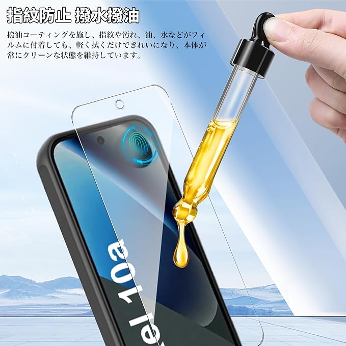 【汚れに強い】撥水・撥油加工が指紋や皮脂の付着を防ぎます。フィルムの表面には様々な特殊加工が施されており、油分、ほこり、指紋に強く、スマートフォンを常に清潔な状態に保ち、見た目の美しさや画面体験にも影響を与えません。頻繁にスマホを拭かないようにします。