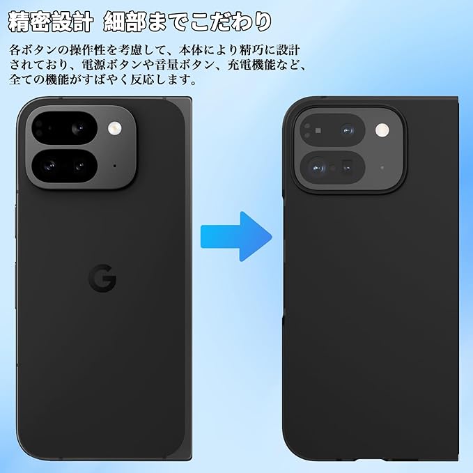 【精確なカットアウト】Google Pixel 9 Pro Fold ケース 各ボタンに従って精密設計され、反応がよくて程よい押しやすく、下部に隙間で着脱が簡単。本体機能に影響せずに、本体の露出を可能な限り下げました。また、ワイヤレス充電機能に全く影響なく使えます。