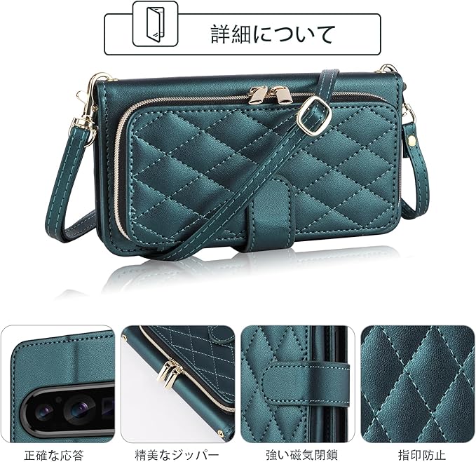 Elisorli for Google Pixel 9 Pro XL/10 Pro XL 手首/ショルダーストラップ カードスロット ジッパー財布 スタンド ための 携帯電話のカバー 持つ Pixel9 9Pro Nine Pixel10 10Pro LX ウォレットケース しい ケース スマホケース カバー スマートフォン 耐久性 耐衝撃 フラップ ストラップホール カード収納 女 グリーン
